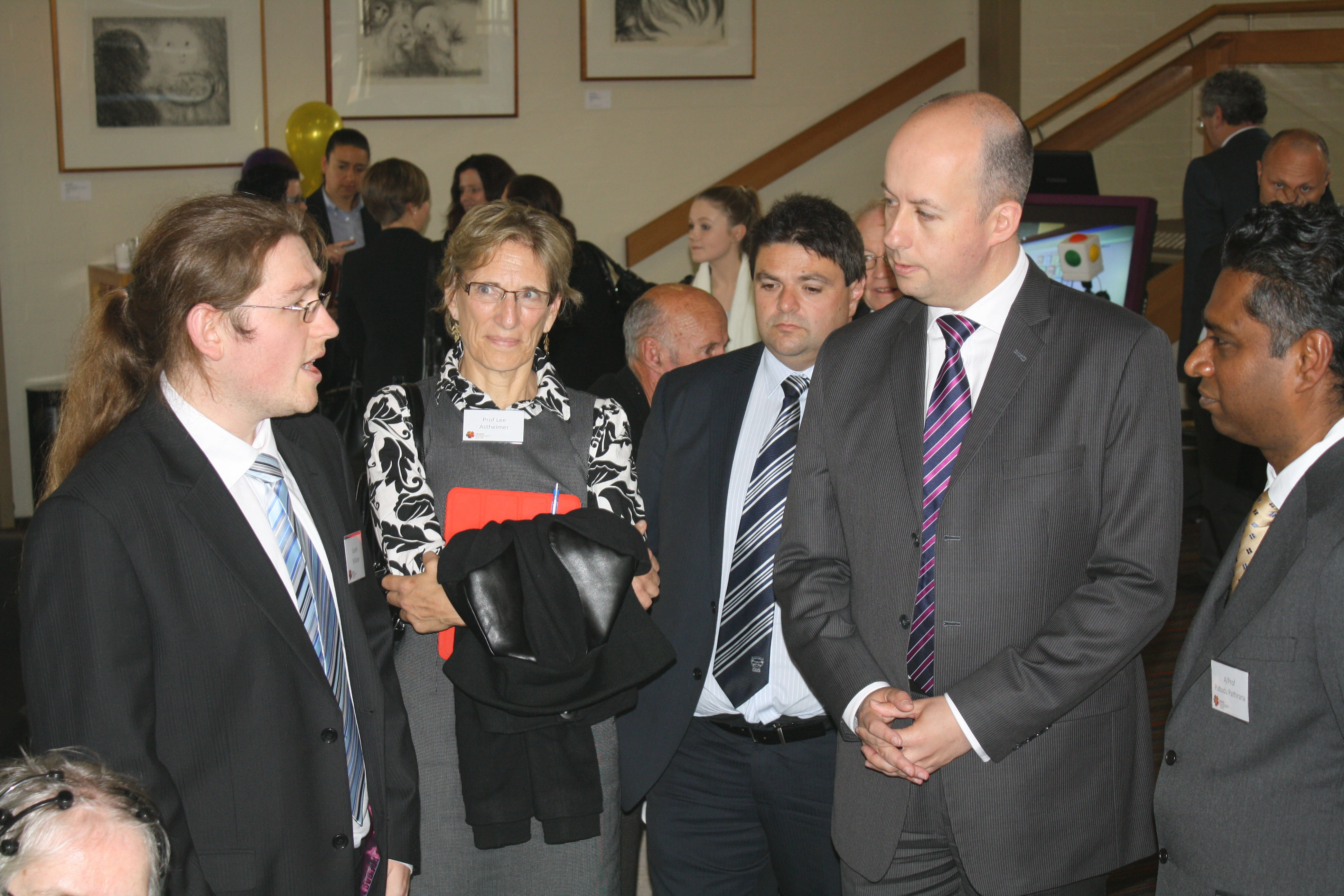 Above: (from left) A Deakin researcher explains the technology to Deakin Deputy Vice Chancellor Lee Astheimer, Member for South Barwon Andrew Katos, Assistant treasurer Gordon Rich-Phillips and Deakin University professor Pubudu Pathirana.