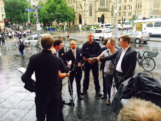 TAC chief executive officer Joe Calafiore today joined Victoria Police Inspector for Road Policing Jason McGregor at Federation Square to warn Victorians of the dangers of becoming distracted by mobile phones or music players when on foot.