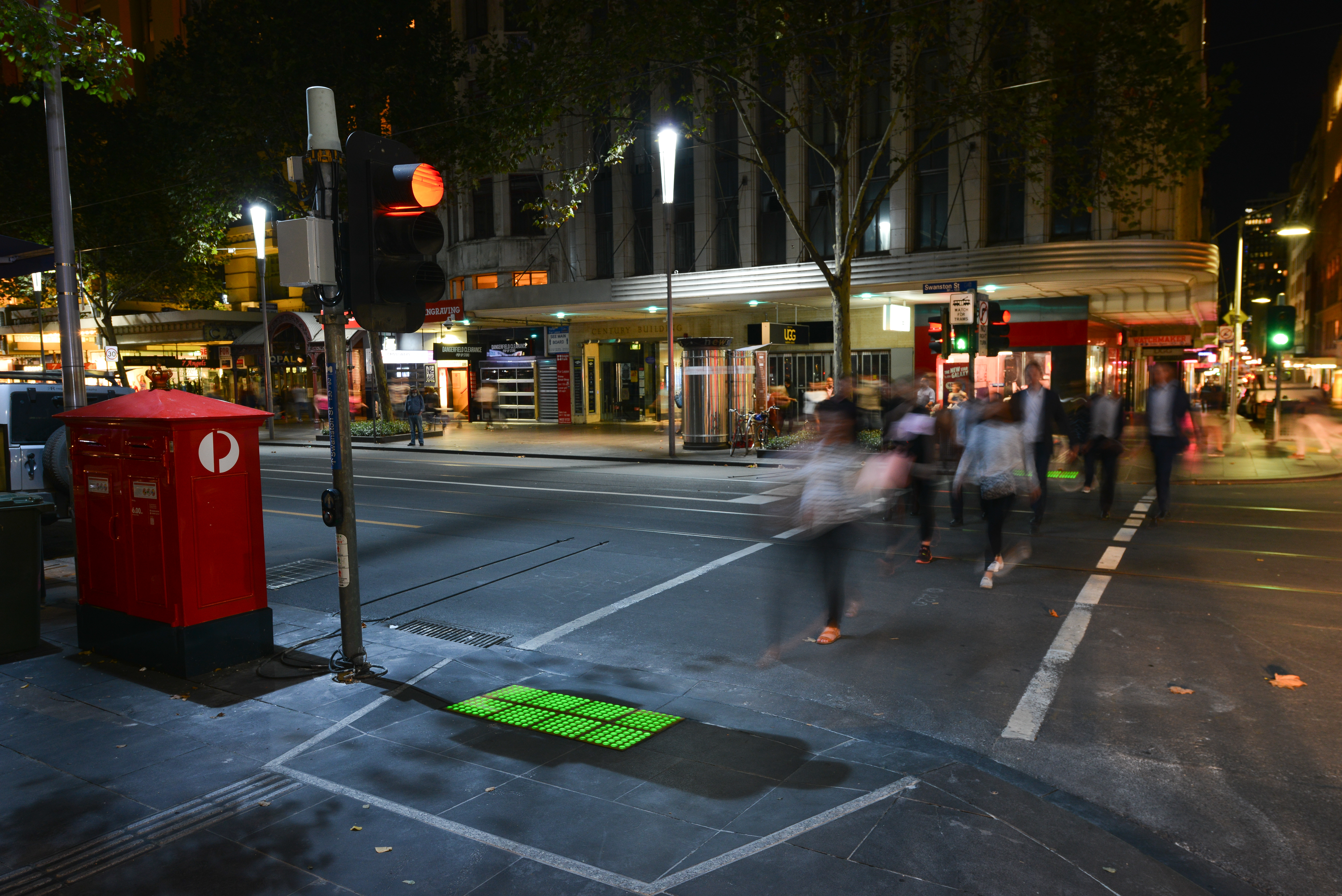 In addition to the newly-lit footpaths, an army of TAC lollipop people and green crossing chaperones will patrol the streets of Melbourne to help people cross the road safely.