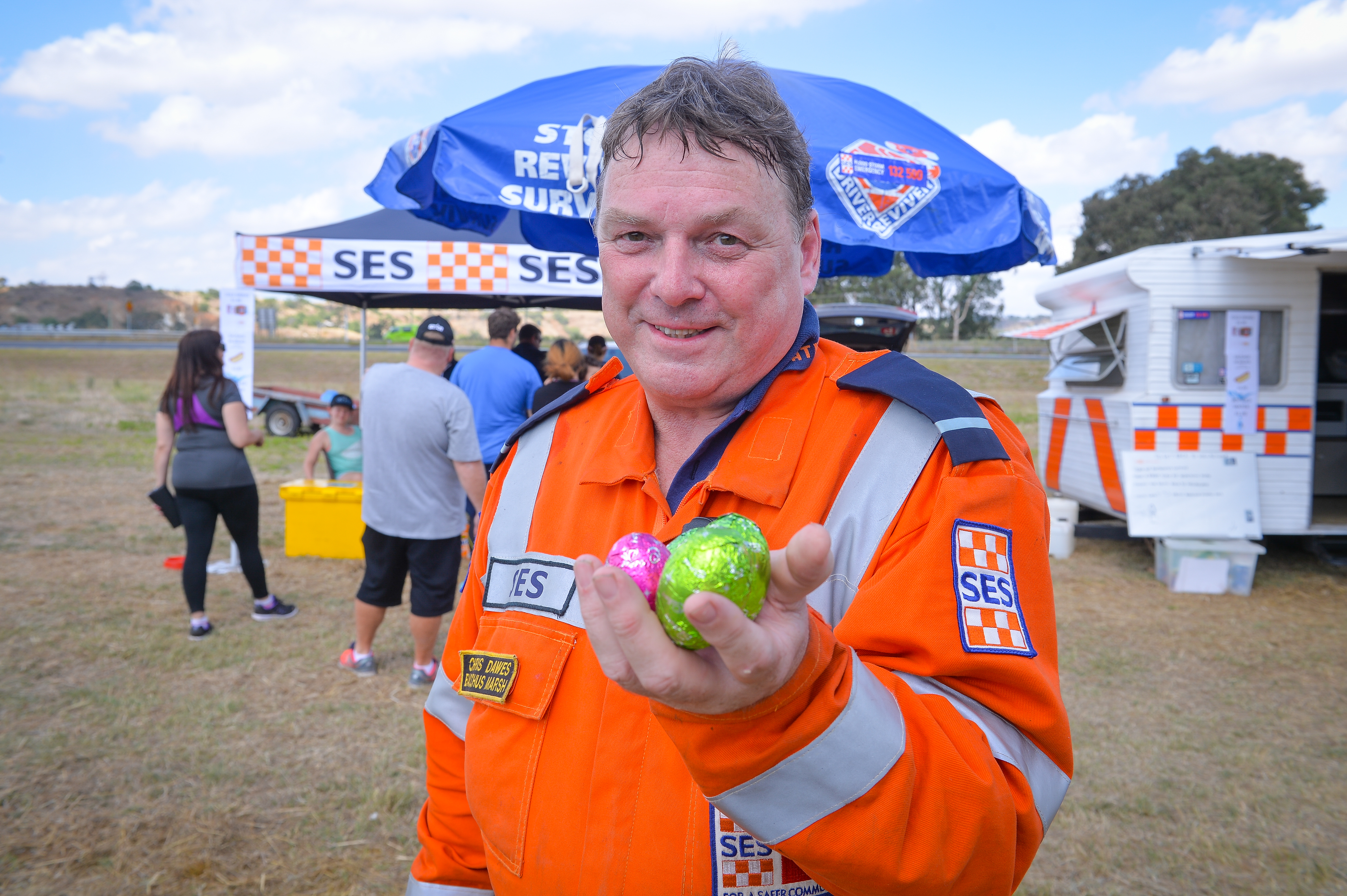 “SES volunteers are taking time out of their holidays to help you stay safe this Easter – they’ll give you a warm welcome, a cuppa and a biscuit to help you on your way.”